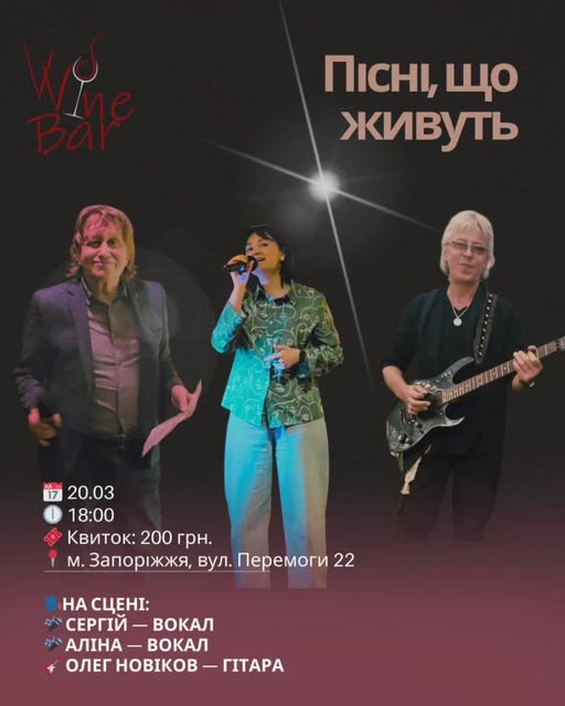 — 20 березня о 18.00 — концерт «Пісні, що звучать разом» (гітара — Олег Новіков): музичний джем — вечір живих пісень, імпровізації та щирої атмосфери. Це буде камерна зустріч, де звучатимуть українські пісні — знайомі, улюблені, а можливо й зовсім несподівані.