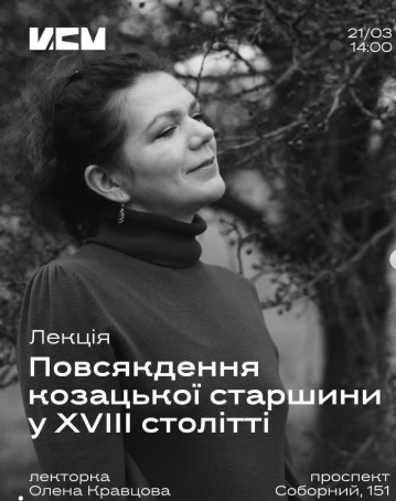 — 22 березня об 12.00 — заняття авторського курсу з навчання вишивці «Традиційна жіноча уставкова сорочка'» від Марії Долгорукої.