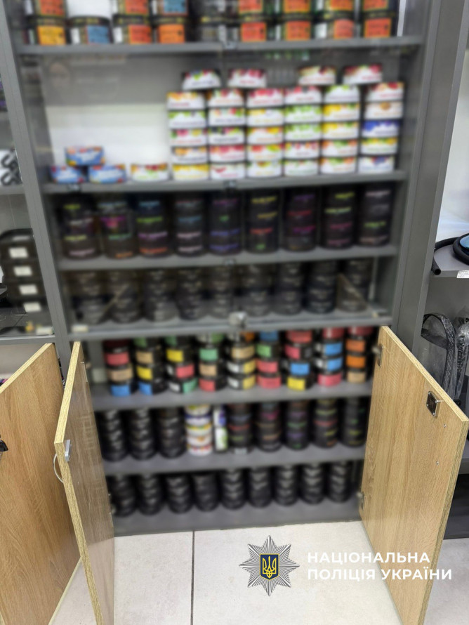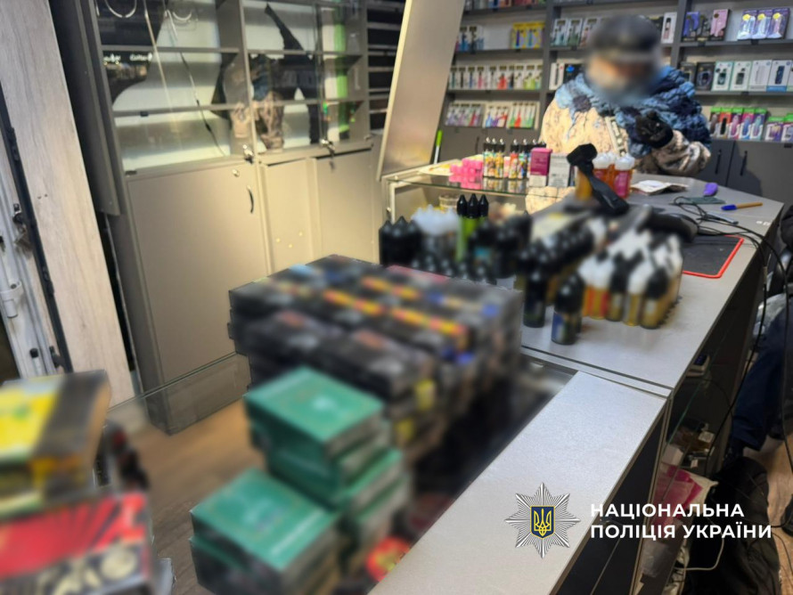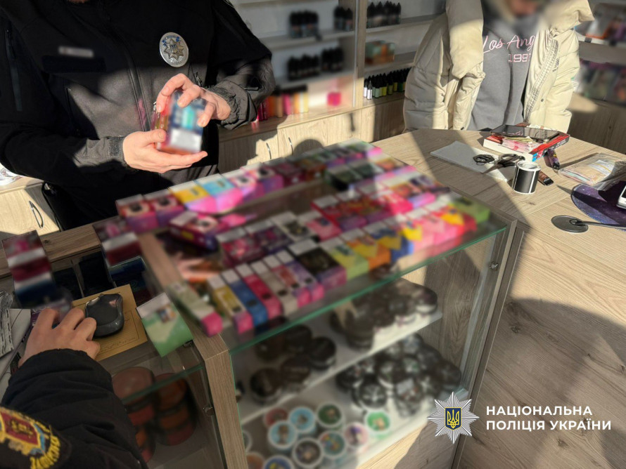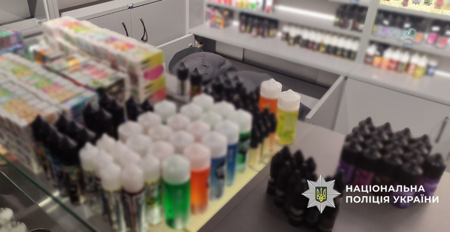 Під час слідчих дій вилучили понад 1200 електронних сигарет і пристроїв для куріння, близько 30 тисяч флаконів нікотиновмісних рідин, нікотинові подушечки, суміші для вейпінгу та тютюн для кальяну.