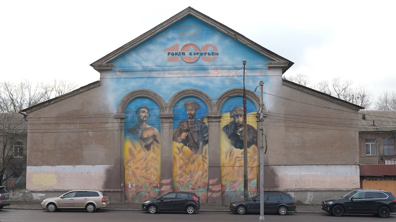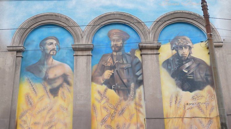 «Для муралу Болбочана було взято портрети, які я робив в різні часи. Портрет козака: збірний образ і портрет героя АТО». Михайло Дяченко, художник