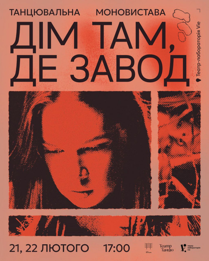 — 21, 22 лютого о 17.00 — прем’єра танцювальної моновистави Аліни Остапець «Дім там, де завод».