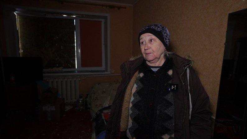 «Коли шарахнуло, в мене на половину вилетіло вікно. В одній кімнаті впала стеля і в іншій кімнаті трохи. Двері відкриті, не можу зайти, ледь залажу. Я спала, так шарахнуло, що я підлетіла. Не злякалася, я вже звикла до вибухів.