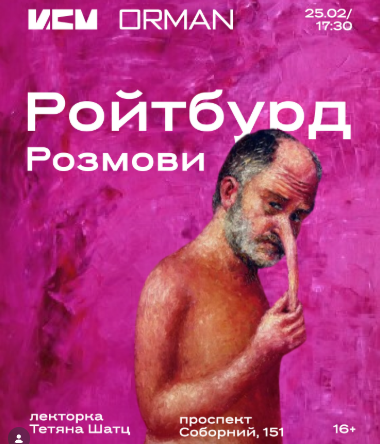 Також 25 лютого о 17.30 у ЦСМ (просп. Соборний, 151) вдруге відбудеться лекція «Ройтбурд. Розмови» art-advisor, кураторки, засновниці ORMAN Тетяни Шатц про творчість та життя видатного українського художника Олександра Ройтбурда.