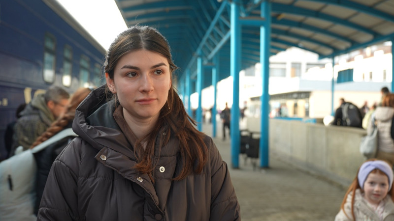 "Один раз ми зупинилися — це було в Дніпрі. Ми спустилися в перехід, там трошечки побули і повернулися. А вдруге зупинилися просто посеред поля. Сказали: "Терміново-терміново, евакуація, всім виходити". Дуже темно, незрозуміло, що навколо, є тільки бетонний паркан. Яка безпека? Бо так принаймні ти хоч якось закритий, і потяг їде. А тут — просто в полі. І більш того, всі люди просто скучкувались".