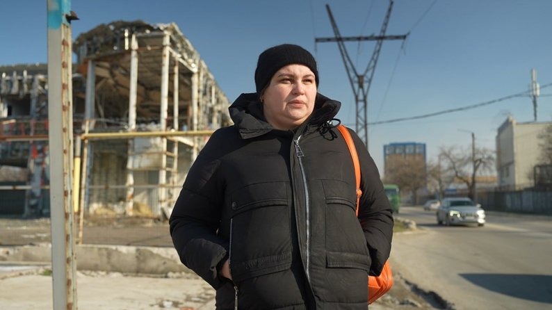 Дар’я Скидан на місці, куди влучила російська авіабомба у грудні 2024 року. Суспільне Запоріжжя