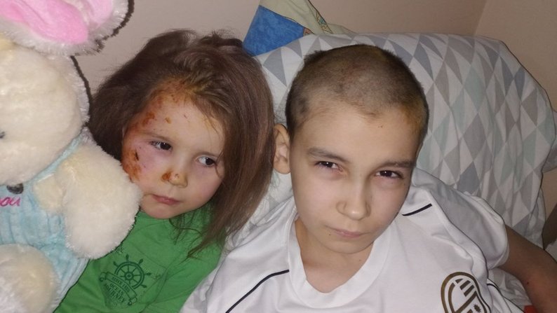 Чотирирічна Єва та 11-річний Микола у лікарні Запоріжжя після обстрілу. Особистий архів Дар’ї Скидан