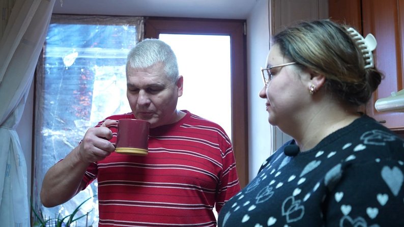 Микола та Єва у квартирі, куди переїхали після російського обстрілу восени 2024 року. Суспільне Запоріжжя"Дуже тяжко згадувати. Але ми пережили. Ми залишились всі живі. Тому що тут було дуже багато загиблих, а ми пережили. Ми залишились. Ми залишаємося разом, нам це легше переносить, адаптуватися, далі жити. Я не знаю… Чи змогла б я ще таке пережити…"