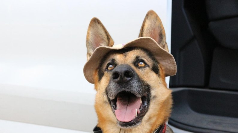 Вівчарка Мішель в панамці. ГУ Нацполіції в Запорізькій області"Ми приїхали до якогось торгівельного центру. Поки чекали на вибухотехнічну групу почали виходити на евакуацію співробітники, а Мішель була в панамці. Бо було дуже спекотно. Співробітники побачили її й запропонували мені її сфотографувати".