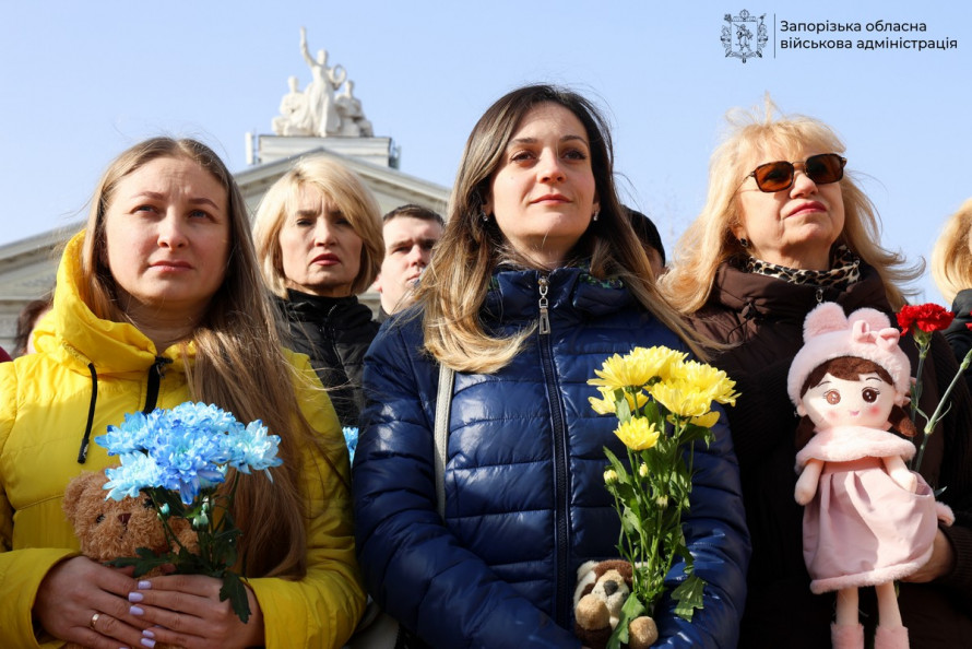 У Запоріжжі в сквері Театральному відбувся мітинг-реквієм до четвертих роковин російського авіаудару по Маріупольському драматичному театру. Учасники акції вшанували пам’ять людей, які загинули під час одного з найтрагічніших епізодів облоги міста. Про це повідомили на сайті Запорізької обласної державної адміністрації.