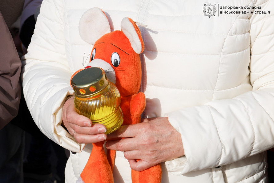 На мітинг прийшли мешканці міста, представники влади, працівники культурних установ та переселенці з Маріуполя. Люди приносили лампадки, квіти та дитячі іграшки — символ пам’яті про загиблих.