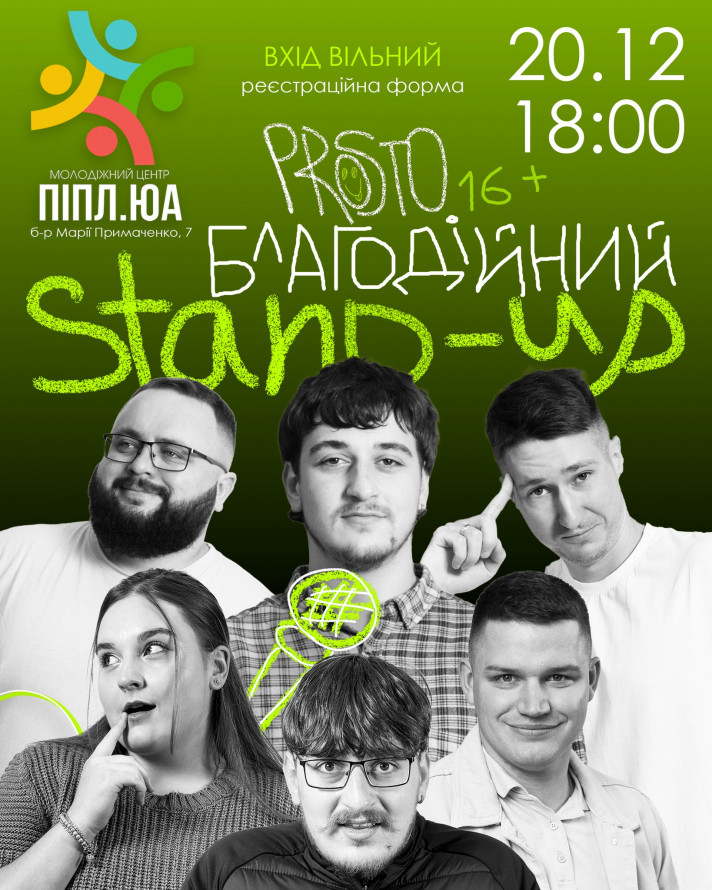 — 20 грудня о 18.00 — благодійний стендав-вечір у молодіжному центрі «Піпл.юа» (б. Марії Приймаченко 7). Безкоштовно, але обов’язкова попередня реєстрація.