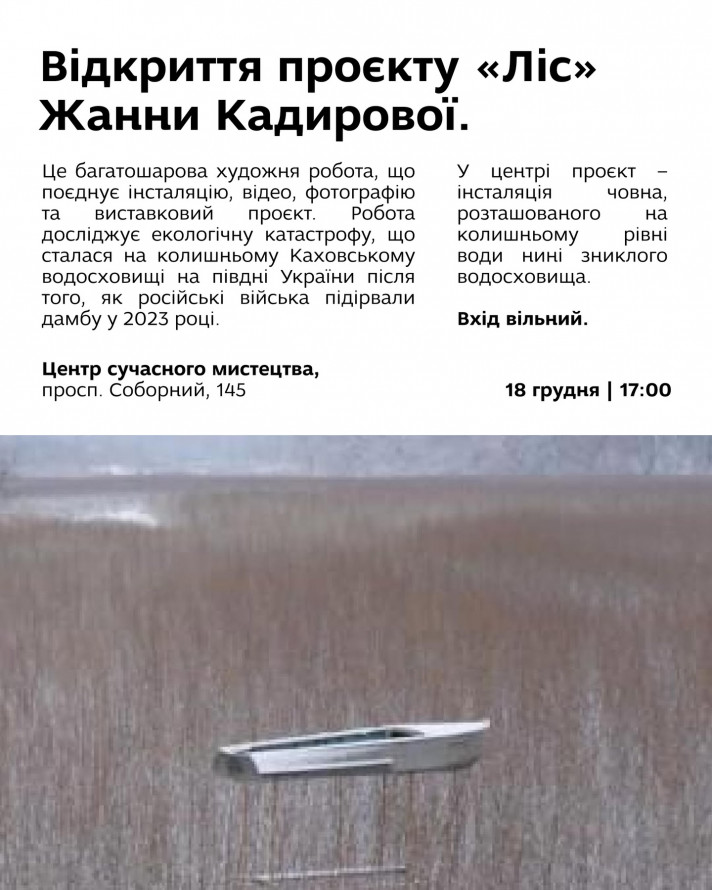 Нова виставка: проєкт «Ліс» однієї з найвідоміших і найвпливовіших у світі українських художниць, учасниці Венеційської бієнале, лауреатки Шевченківської премії Жанни Кадирової (Київ) — презентація 18 грудня о 17.00. Виставка працюватиме і в наступні дні.