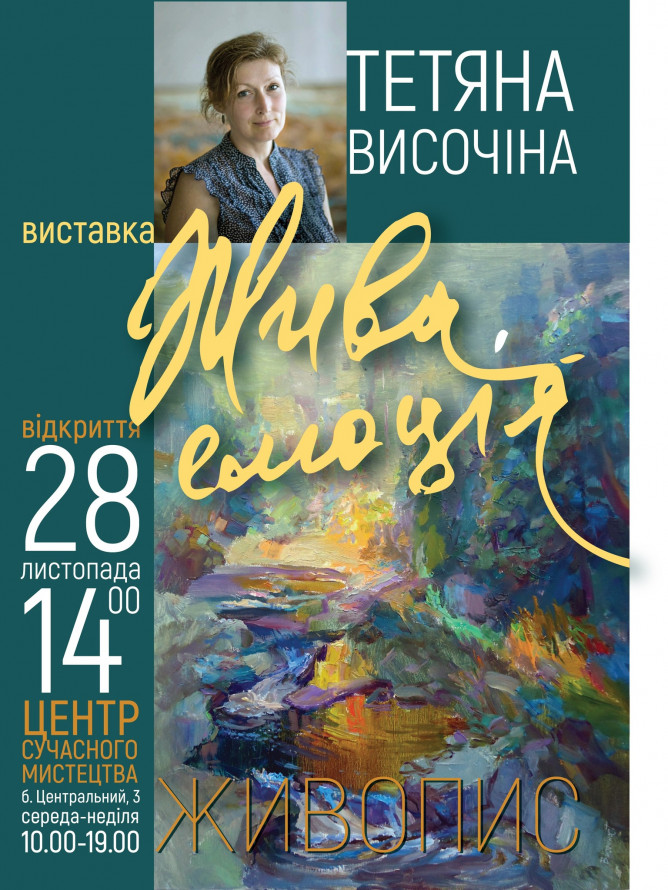 Виставка“Жива емоція” Тетяна Височина (Запоріжжя), до ювілею художниці — до 21 грудня.