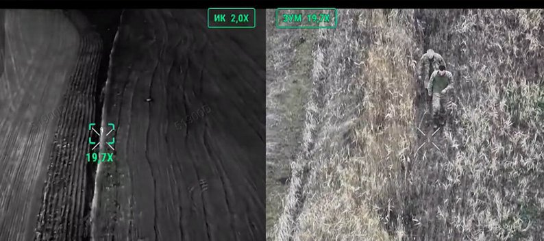 "Скидали близенько біля противника. І так виявилось, що перша міна лягла чітко між двома військовослужбовцями Росії. І потім вони втрьох почали відходити в купку, і ми почали потім допрацьовувати: кинули другу, третю, четверту міни. І наші хлопці молодці: як стовпчики вкопані стояли й не рухалися. І це нам допомогло чітко прицілитися та вдарить".