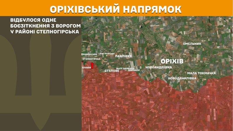 А на Оріхівському відтинку фронту відбулося одне боєзіткнення в районі Степногірська.