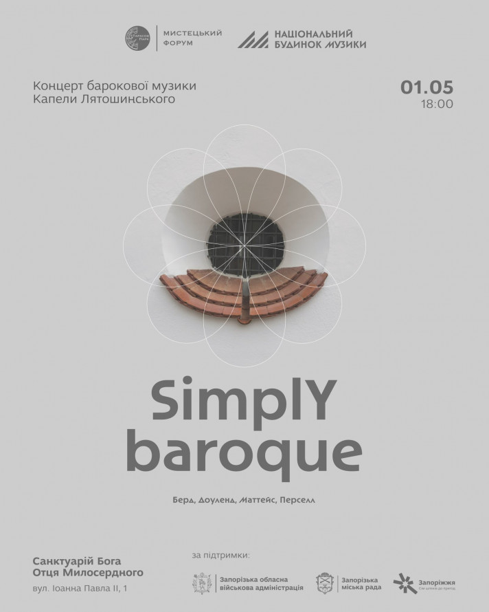 Відкриття відбудеться 1 травня о 18:00 у Санктуарії Бога Отця Милосердного (вул. Іоана Павла II, 1, біля цирку), де прозвучить концерт барокової музики Simply Baroque у виконанні солістів всесвітньовідомої капели Лятошинського з Києва. У програмі — ранні англійські мадригали, арії та українські канти, що відтворюють звучання епохи й водночас відкривають її емоційну близькість до сучасного слухача.