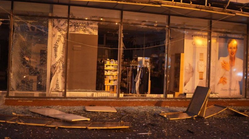 Пошкоджений ТЦ внаслідок російського обстрілу Запоріжжя в ніч проти 26 лютого 2026 року. Telegram/ Іван Федоров