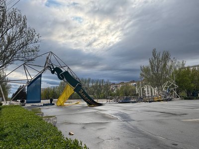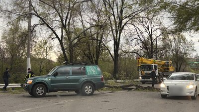 Сьогодні, 26 квітня, після 16 години в Запоріжжі погіршилися погодні умови. Місто накрив сильний вітер. У деяких районах дерева попадали на дороги та автівки, позривало вивіски та дроти, зникло світло.