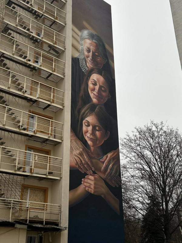 Мурал із зображенням трьох поколінь, що символізує підтримку. ЗНУ