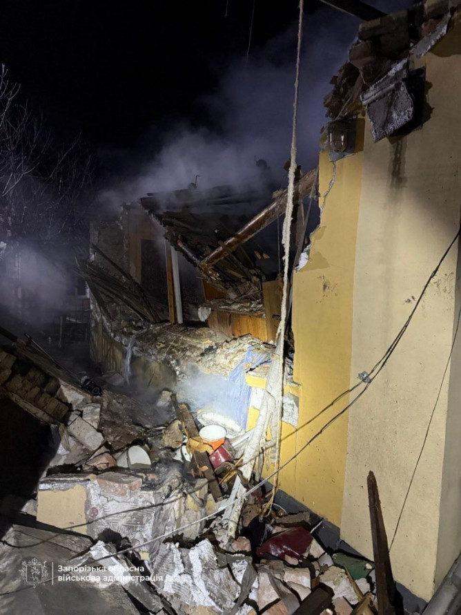Вночі 15 лютого російські війська знову атакували Запоріжжя ударними безпілотниками. Внаслідок влучання дрона-камікадзе пошкоджено щонайменше чотири житлові будинки: вибиті вікна, посічені фасади та покрівлі, зруйновані господарські споруди, повідомили в ЗОВА.