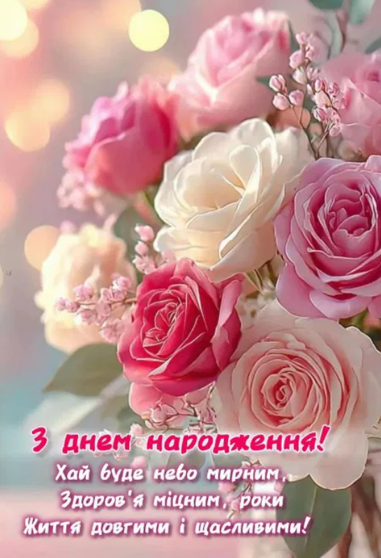 Вітаю з днем народження! Бажаю завжди залишатися життєрадісною людиною. Бажаю миру, щастя, любові, здоров’я та сил. Бажаю цікавих захоплень та неймовірних успіхів у будь-яких справах. Бажаю щоденного натхнення та обов’язкового везіння у потрібну хвилину.