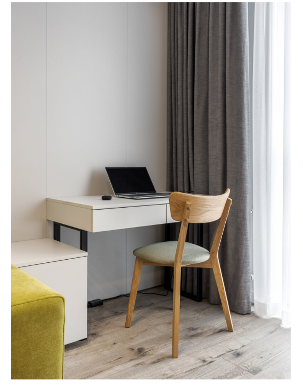 У меблевому питанні важливо шукати компроміс між компактністю та зручністю. Робоче місце має бути не тільки стильним, але й ергономічним. Письмовий стіл бажано вибирати з висувними шухлядами або додатковими поличками. Це дає змогу зберігати канцелярію, документи та інші необхідні речі під рукою, не захаращуючи простір.
