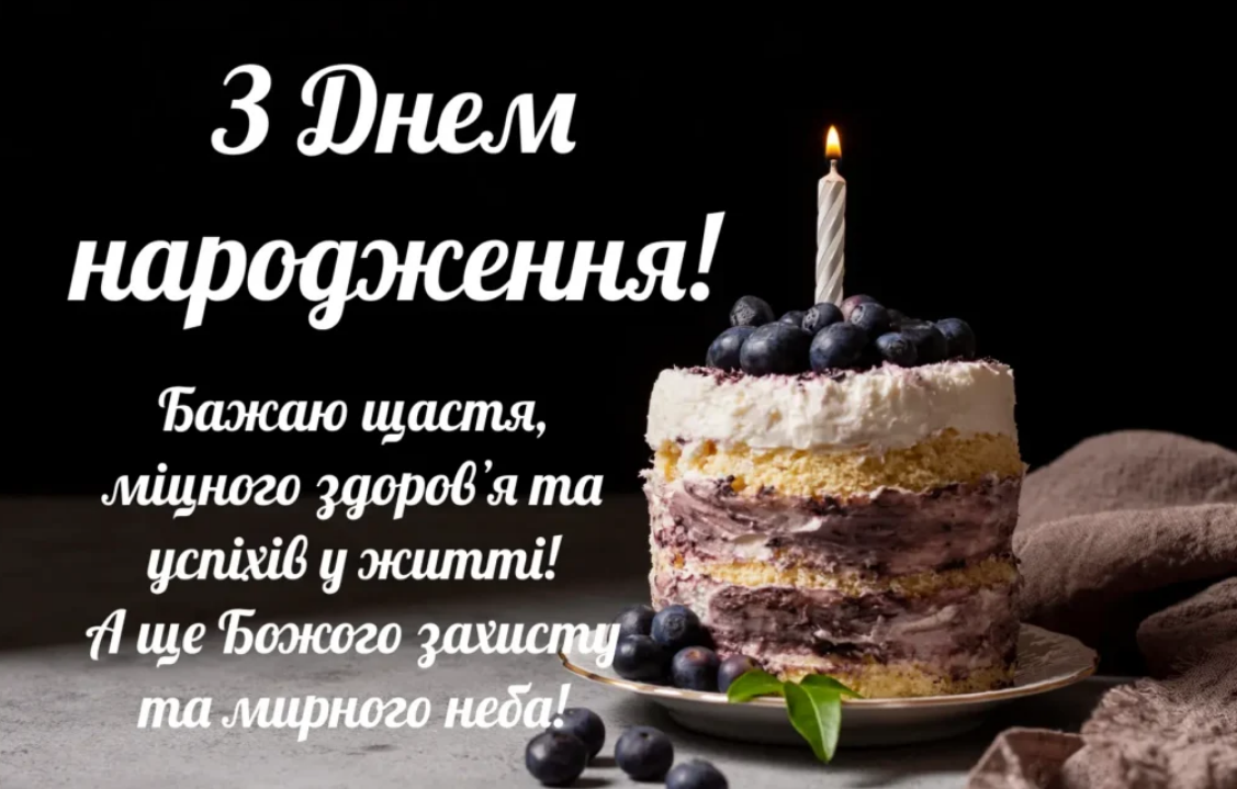 З Днем народження! Нехай у твоєму житті завжди буде місце для миру й щасливої долі. Бажаю тобі невичерпної енергії, впевненості та сили духу. Хай не згасає іскра натхнення, а віра веде до великих звершень. Нехай серце буде щедрим, а люди — вдячними за твоє тепло.