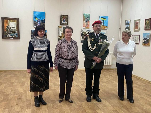 «Володимир — друг нашого музею, ця виставка — вже п’ята в нашому музеї. Ми живемо в такий час, коли митці стають воїнами, а воїни — митцями. На виставці представлені роботи, написані у 2022-2025 роках. Це те, що автор бачив на свої очі, що пропустив через свою душу. Ця виставка — данина подіям, які зараз переживаємо, і данина бійцям, які захищають країну і дають нам можливість відкрити цю унікальну виставку», — зазначила Юлія Мартиненко.