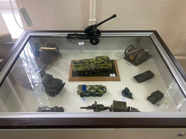 На виставці також представлені макети військової техніки, з якою стикався (за військовою спеціальністю) старший навідник самохідної артилерійської установки 2С1 «Гвоздика» Володимир Гордійченко.