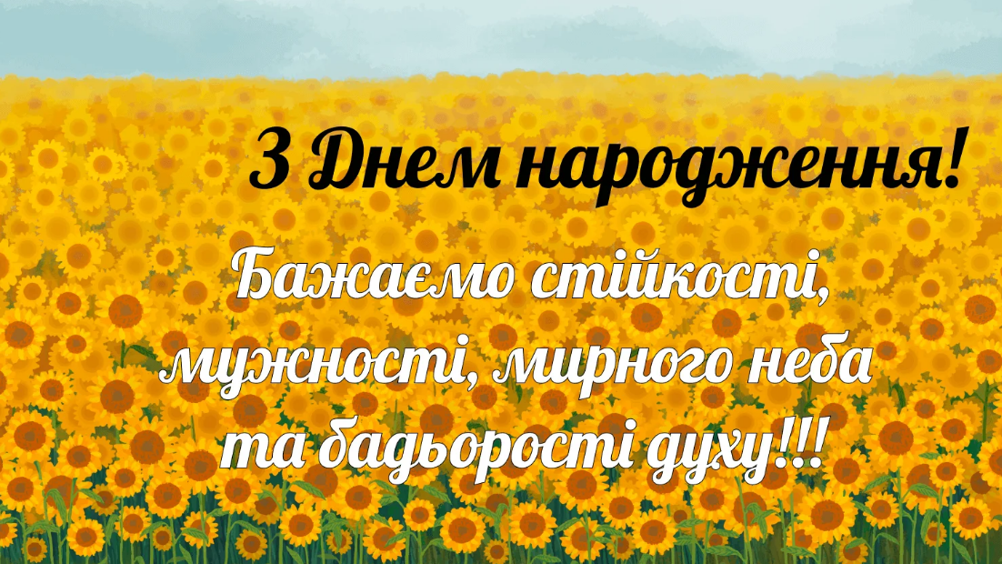 З Днем народження, незламний українцю/українко! Твій дух сильніший за будь-які негаразди. Нехай Божа благодать завжди супроводжує тебе, а здоров’я буде міцним, як граніт. Бажаємо тобі перемоги на всіх фронтах – як внутрішній, так і зовнішній. Нехай мир і спокій скоро повернуться в наш дім!