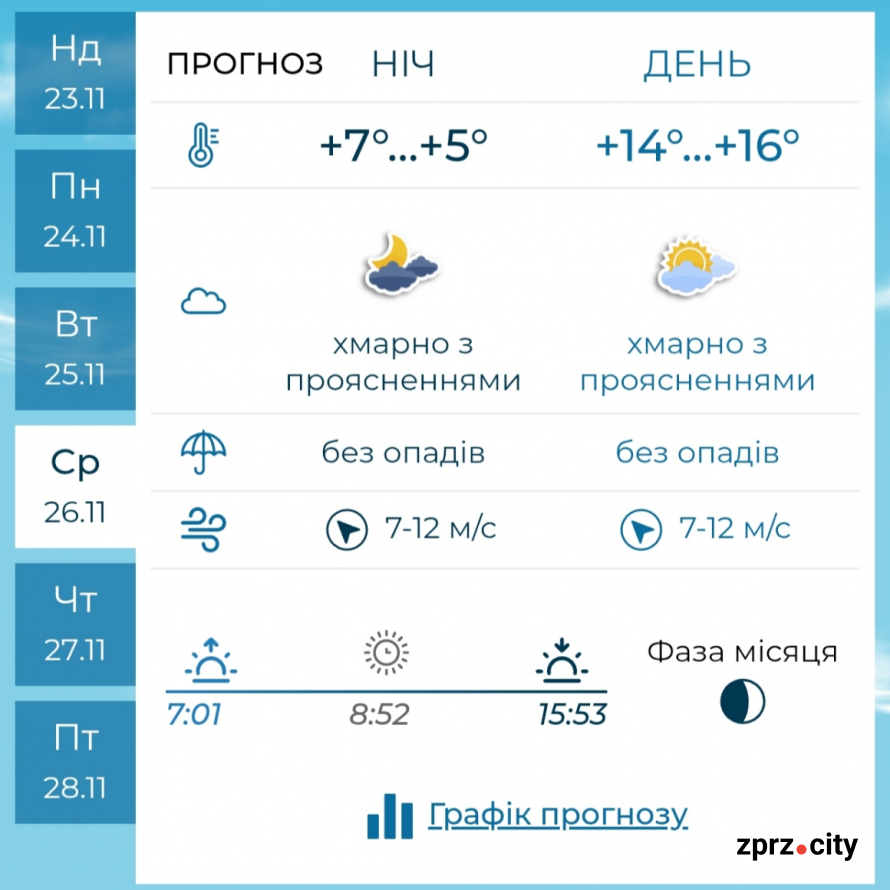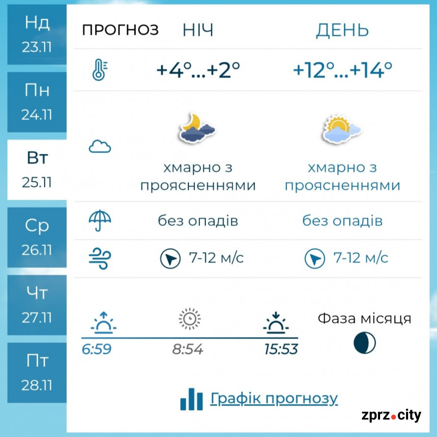 За словами метеорологів, така погода типова для перехідного періоду між осінню та зимою, коли атмосферні фронти активно переміщуються територією України. Запоріжцям варто скористатися сприятливими днями вівторка та середи для прогулянок на свіжому повітрі, адже попереду – новий виток погодних змін.