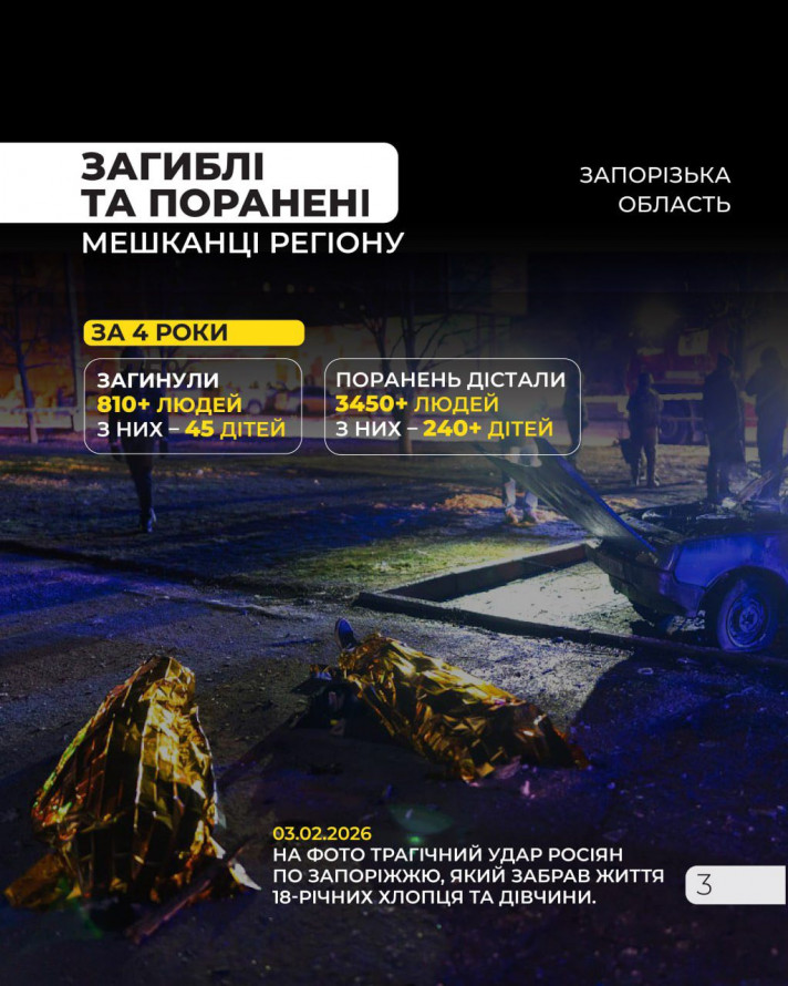 Читайте також: «Шок. Це неможливо»: що згадують про 18-річних дівчину і хлопця, які загинули у Запоріжжі 3 лютого від удару ворожого дрона