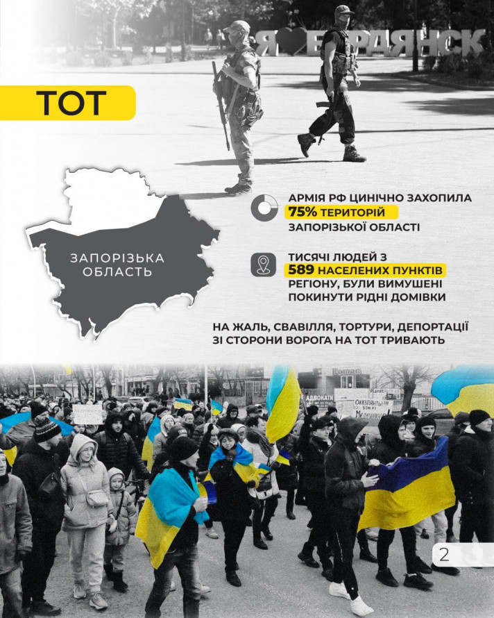 Армія рф цинічно захопила 75% територій Запорізької області.