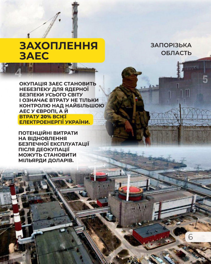 Захоплення ЗАЕС — окупація атомної електростанції в Енергодарі Запорізької області становить небезпеку для ядерної безпеки усього світу і означає втрату не тільки контролю над найбільшою АЕС у Європі, а й втрату 20 % всієї електроенергії України.