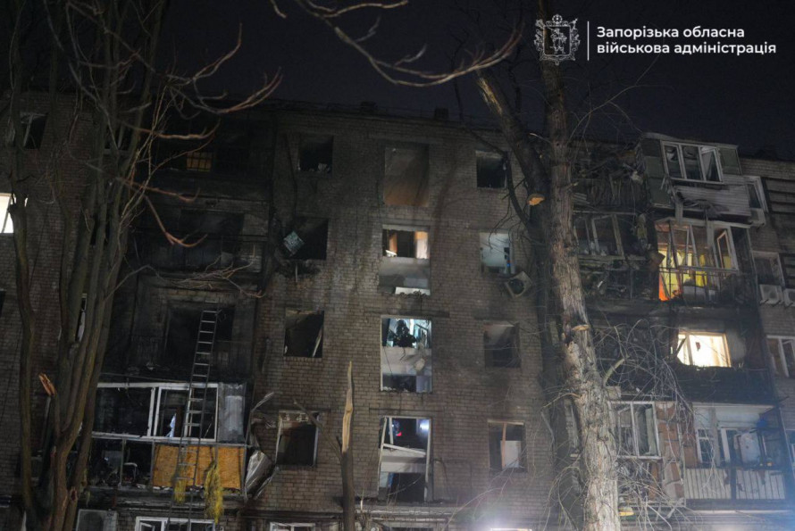 Пошкоджено 31 багатоповерхівку та 20 приватних будинків через ворожу атаку у трьох районах Запоріжжя. П’ять багатоповерхівок постраждали найбільше — через масштабні пожежі, що розгорілися після влучань.