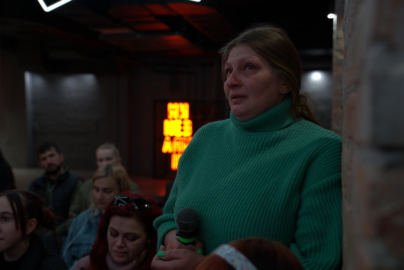 "В липні 2023 року мені теж прийшла звістка, що мій чоловік зниклий безвісти. В цій ситуації, я можу сказати, на щастя, він повернувся додому. Ті, хто втрачав, ті мене зрозуміли. І такі фільми, вони дуже потрібні. В цьому фільмі я побачила дитину, хлопчика, якого я знаю з дитинства. Це його вже дитина, його портрет був. Серед цих 90 000 зниклих безвісти мій юний брат. Ми знаємо, що він загинув, але він не повернувся. Серед цих 90 000 побратими мого чоловіка".