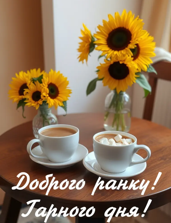 Доброго ранку! Це час для нових звершень і добрих справ. Нехай день принесе тобі сили для досягнень, теплі обійми від рідних і натхнення на кожному кроці. Ти сильний і здатний на великі речі. Нехай світ відповідає тобі добром!