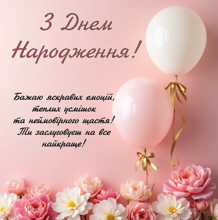 З днем народження! Бажаю, щоб життя завжди дарувало яскраві враження, натхнення і нові горизонти. Нехай поряд будуть вірні друзі, щирі почуття, гармонія та добробут. Пам’ятай: ти заслуговуєш на найкраще і щодня маєш отримувати трохи магії та радості.