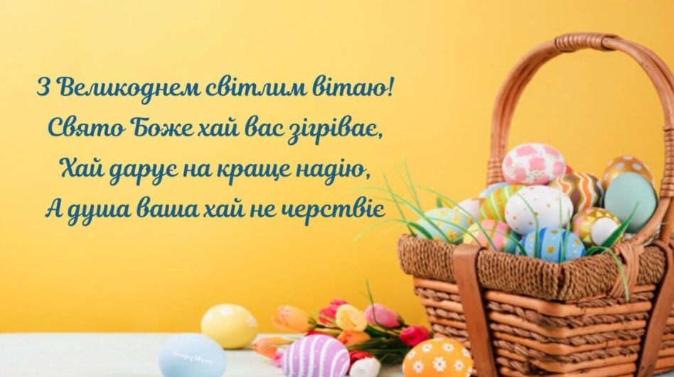 У цей святковий великий день хочу побажати вам добра, міцного здоров’я, миру і процвітання у всьому. Нехай кожен день ваш будинок наповнюється щастям і благополуччям. Даруйте один одному увагу і турботу, любов і вірність. Вітаємо зі святом Великодня!