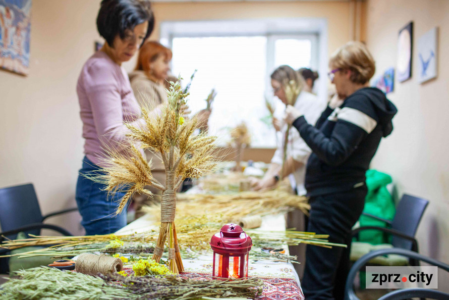 «Я думала, що це буде дуже легко, але коли ми вже почали робити, з’явилися певні складнощі, — ділиться Діана. — Проте головне — фантазія: ми підбираємо трави, щоб закласти певний сенс у сніп. В цілому не важко, але якщо робити 12 таких снопів, то трошки втомлює».