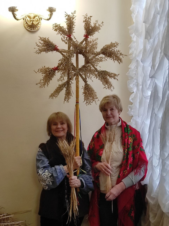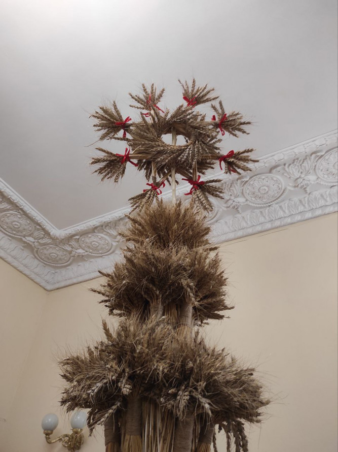 У фоє театру Магара встановили триметровий різдвяний дідух, створений запорізькими волонтерками