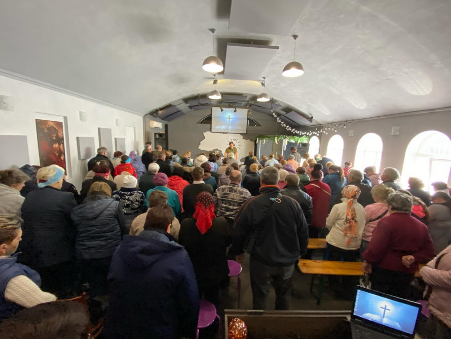 У службі також розповіли, що тут під час війни віруючі продовжували допомагати місцевим жителям, роздавали їжу, приховували нужденних і не припиняли богослужінь, попри обстріл.