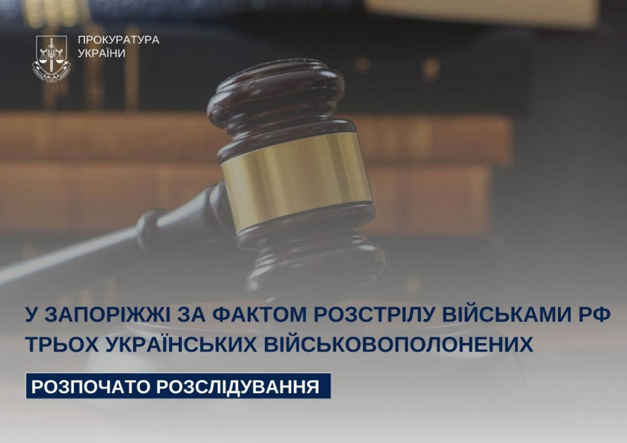 Запорізька обласна прокуратура повідомила про початок розслідування злочину проти військовополонених. Про це повідомили у пресслужбі Запорізької обласної прокуратури. Справа стосується вбивства трьох українських захисників, які потрапили в полон до російських військових.