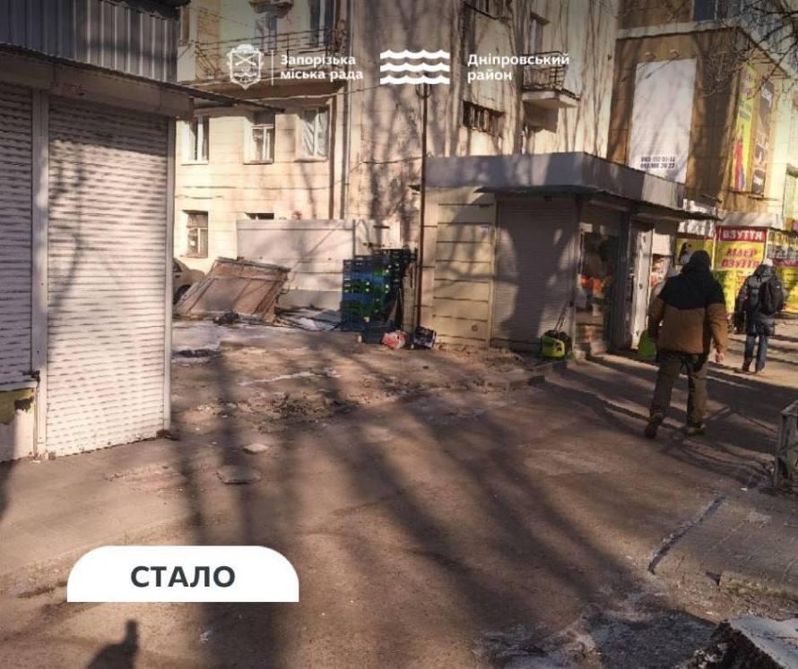 У Дніпровському районі Запоріжжя власники двох незаконних кіосків самостійно прибрали свої споруди з вулиць міста. Про це повідомили у районній адміністрації Запорізької міської ради.