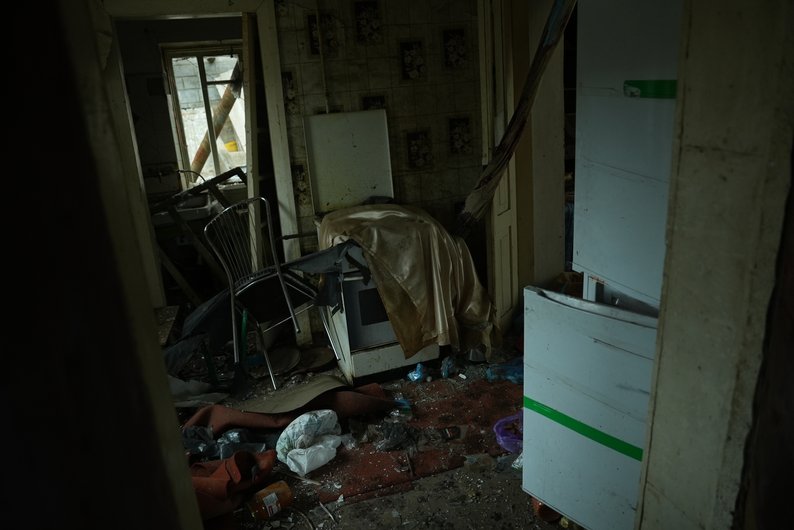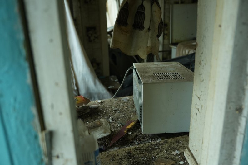 Мікрохвильова піч в одному з понівечених будинків, Юліїівка, Запорізький район, 7 січня 2026 року. Суспільне Запоріжжя