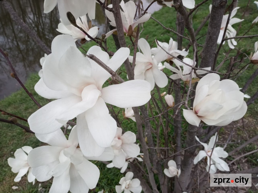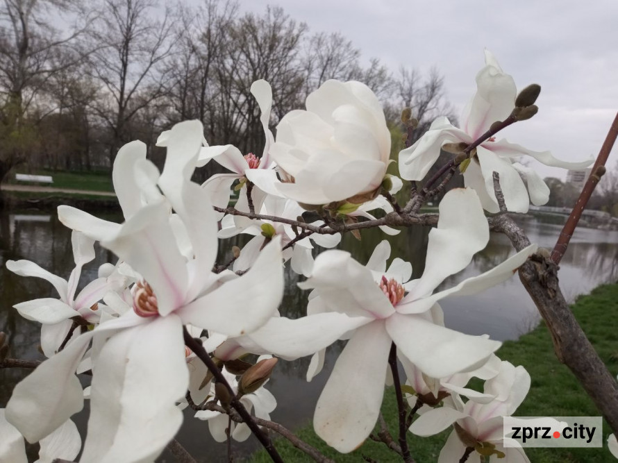 У Центральному парку культури та відпочинку «Дубовий гай» — сезон магнолій, які зараз квітнуть не повну. Біля дерев стоїть приємний тонкий аромат, як від дорогих парфумів. У парку побувала журналістка zprz.city.