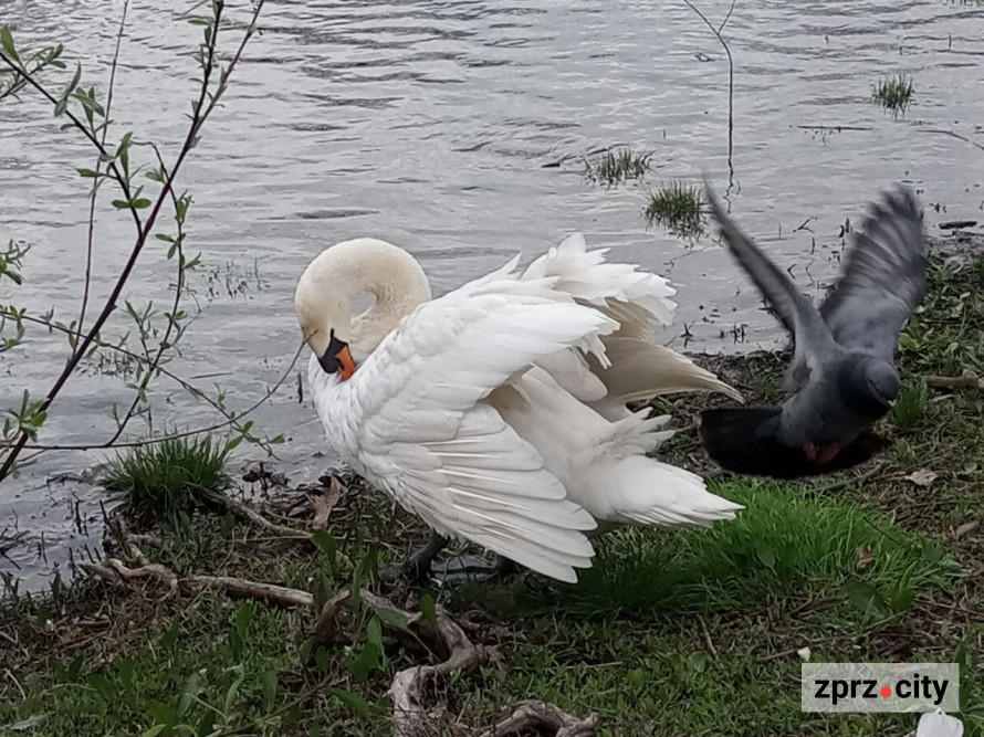 До речі, води зараз побільшало і в одній з водойм можна було побачити двох красенів-лебедів, один з яких помітно, що молодий. Також у парку багато голубів. А от качечок було мало. Ще можна побачити коней, поні та віслючка.