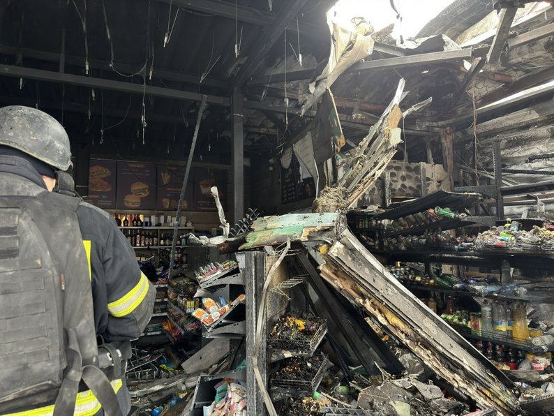 Також в одному із селищ російські війська двічі вдарили по продуктовому магазину, внаслідок першого влучання горіла будівля та дві легкові автівки на площі 100 кв. м. Згодом через повторний удар зайнялася ще одна пожежа такої ж площі.