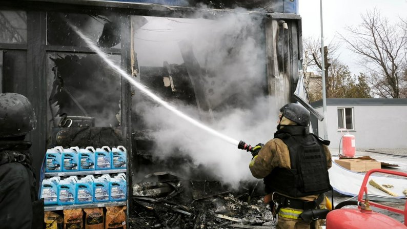 Так, у Запоріжжі рятувальники ліквідували пожежу на автозаправній станції площею 50 кв. м, що виникла внаслідок російського удару.