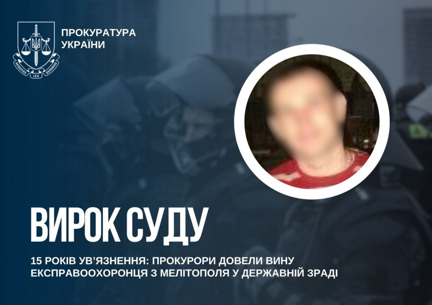 У Запорізькій області засудили колишнього правоохоронця, який під час окупації Мелітополя перейшов на бік рф. Зазначається, що чоловік не виїхав із захопленої території та добровільно почав співпрацювати з окупаційною владою. Про це повідомили у пресслужбі Запорізької обласної прокуратури.